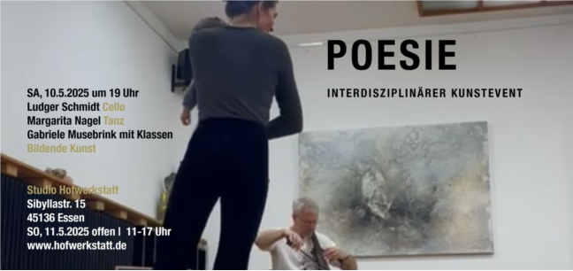 Die Hofwerkstatt Essen als Kultureinrichtung im Essener Süden existiert seit nunmehr 30 Jahren. Ausgangspunkt der Gründung der Einrichtung war und ist die Kommunikation der verschiedenen Disziplinen im Haus. Und in diesem Fall geht es um Kunstevents, in denen die verschiedenen Künste auch ohne das gesprochene Wort und zugleich mit verschiedenen Sprachen einen Gesamtklang ergeben dürfen.