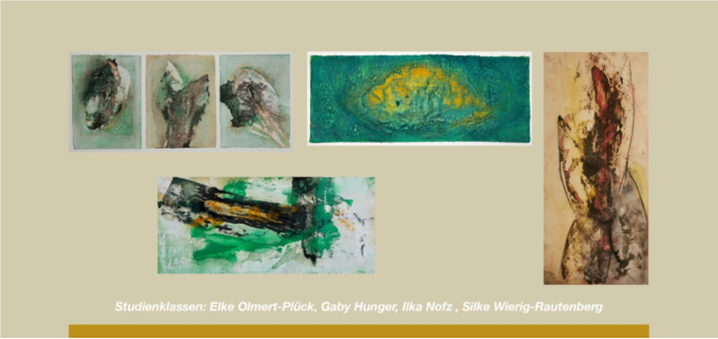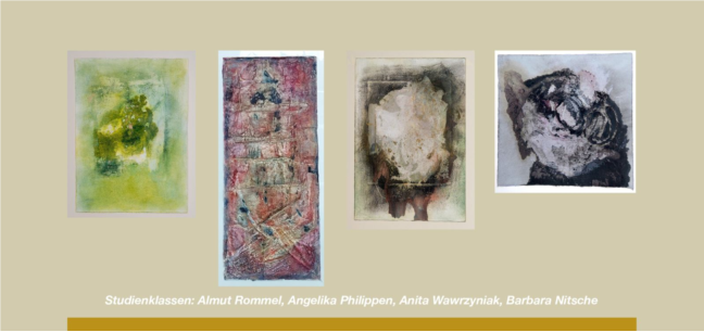 Teilnehmer der Studien-Malklassen von der Kunstschule Musebrink drücken sich vielgestaltig in dieser besonderen Art der Malerei aus und haben sich eingelassen auf den feinen Raum des Interagierens von Material und dem, was sich in diesem spürenden, zumeist langsamen Tun entwickelt.