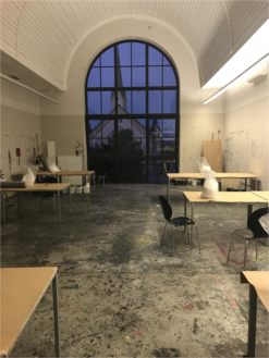 Kunstschule Essen | Marmormehl, z.T. Sumpfkalk, Leinwand